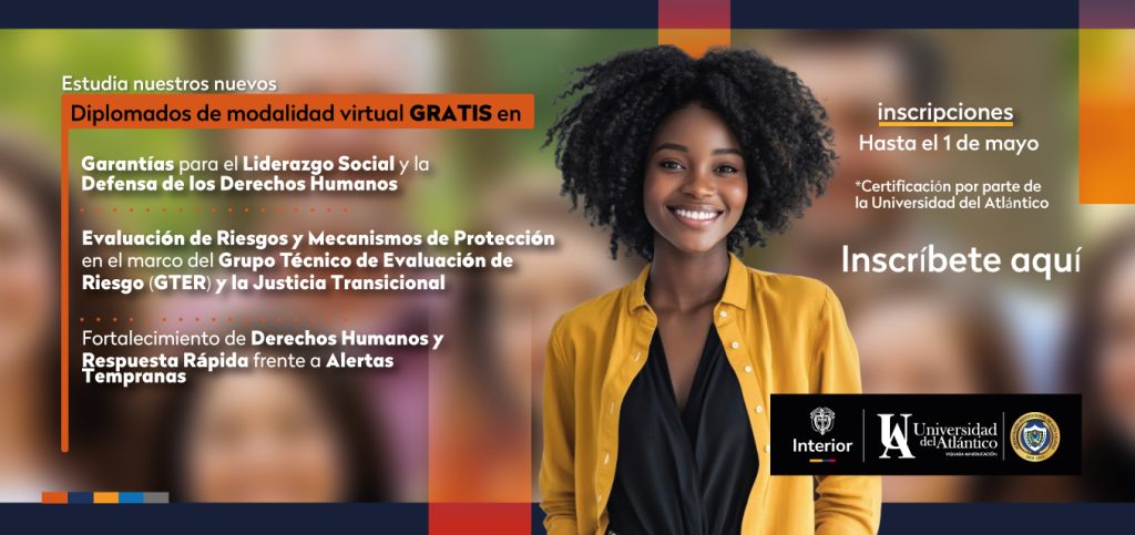 El Ministerio del Interior y la Universidad del Atlántico, en el marco de su estrategia de fortalecimiento de capacidades territoriales, abren una nueva convocatoria para acceder a tres diplomados completamente gratuitos en derechos humanos, seguridad humana y gestión del riesgo, dirigidos a líderes sociales, funcionarios públicos y comunidades de todo el país.